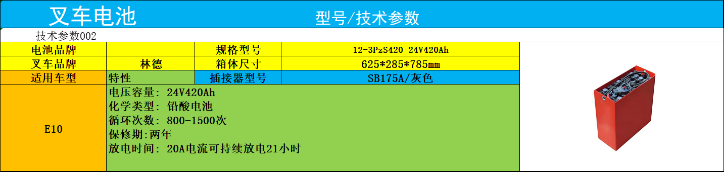 林德叉車電瓶E10 迅炬12-3PZS420電動(dòng)搬運(yùn)車電瓶24V420AH規(guī)格表