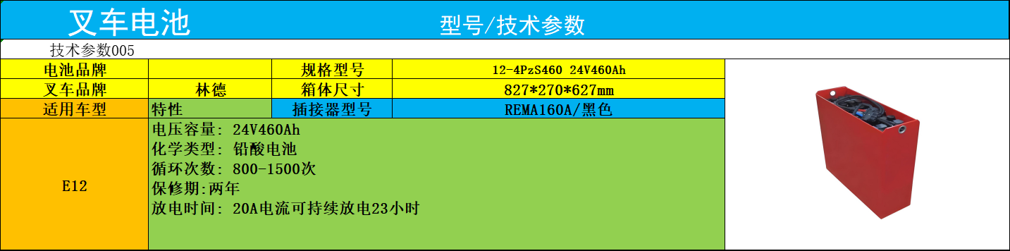 林德叉車電瓶E12 迅炬12-4PZS460 平衡重叉車蓄電池24V460AH安裝規(guī)格