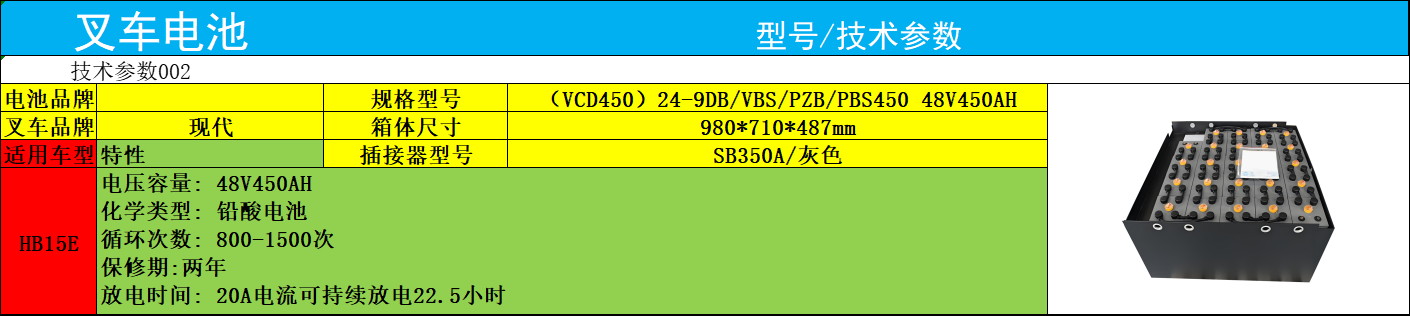 現(xiàn)代叉車電瓶HB15E 迅炬VCD450叉車電瓶廠家直銷 24-9VBS450鉛酸48V450AH