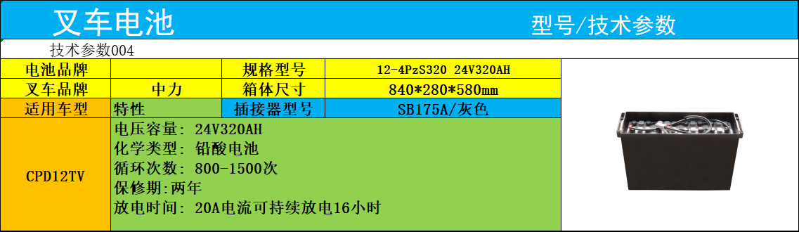 中力電動叉車鋰電池CPD12TV 迅炬24V動力鐵鋰電池組參數(shù)